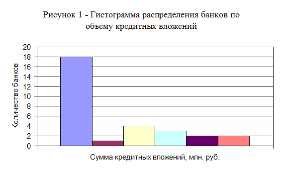 где Хmax - максимальное значение признака в ряду; Xmin – минимальное значение признака в ряду. Например, величину интервала для вариационного ряда распределения банков (см. табл.1) по объему кредитных вложений равна: