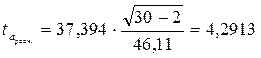 Рассчитаем t-критерий Стьюдента для выборочной совокупности: