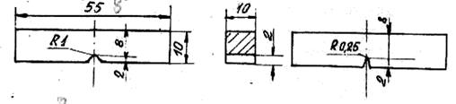 где Ар - общая работа разрушения образца в кГм; F - площадь поперечного сечения образца в см2. В системе СИ единицей измерения ударной вязкости является МДж/м2. Чтобы перевести единицы измерения кгм/см2 в МДж/м2, следует полученную величину разделить на 10 Испытания на удар проводятся на стандартных образцах согласно ГОСТ 9454-78 (рисунок 8.1).