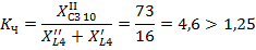 Выбираем наименьшую уставку и проверяем коэффициент чувствительности, который должен быть не менее 1, 25.
