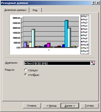 Рис.1.6 Вікно Майстра діаграм Крок 2. Завдання початкових даних діаграми. (Рис.1.7)