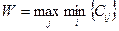 Вибираємо максимальне значення Mj(N), що буде відповідати оптимальному варіанту будівництва. Результати розрахунків наведені в таблиці 1.2 Критерій Вальда. Цей критерій враховує принцип найбільшої обережності, оскільки він ґрунтується на виборі найкращого з найгірших варіантів СТО Nj. Оскільки у вихідній матриці за умовою завдання результат Сij – це виграш (прибуток), тоді під час вибору оптимальної стратегії використовується maxmin критерій. Для визначення оптимального варіанту будівництва СТО Nj у кожному рядку матриці результатів знаходимо найменший елемент min{ Сij }, а потім вибираємо варіант (рядок), якому будуть відповідати найбільші елементи із цих найменших елементів, тобто дія, що визначає результат, який дорівнює