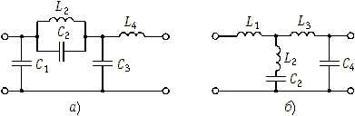 Нормированные элементы данной строки и будут нормированными элементами фильтра, схема которого приведена на рисунке к данной таблице. При этом, обозначения элементов вверху таблицы относятся к схеме а, а внизу – к схеме б. Истинные значения элементов получаются путем денормирования.