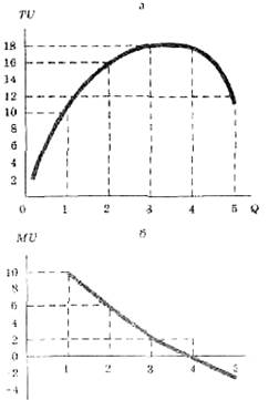 Рис. 7.1. Обшая (а) и предельная (6) полезность