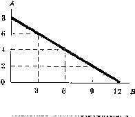 PAА + PBB < или= J, где РА и Рв — цены товаров А и В; А и В — количество данных товаров, J — доход потребителя. Приведенное уравнение отражает бюджетные ограничения потребителя. Если представить их графически, то мы получим бюджетную линию, которая показывает различные комбинации двух благ, которые могут быть приобретены при фиксированной величине денежного дохода и определенных ценах. Определим бюджетную линию на конкретном примере. Пусть благо А стоит 1, 5 денежной единицы, а благо В — 1 денежную единицу. Потребитель X при доходе в 12 денежных единиц может приобрести комбинации благ А и В, которые приведены в табл. 7.5.