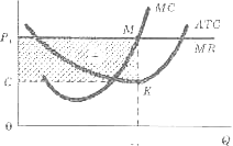 Фирма максимизирует прибыль в точке М, выпуская в соответствии с правилом MR = МС Ql единиц производства. Валовой доход определяется произведением цены Р1 и объема выпуска Ql и равен площади фигуры OP1MQ1. Валовые издержки соответствуют площади прямоугольника OCKQ1. Разность между валовым доходом и валовыми издержками образует экономическую прибыль, равную площади заштрихованной фигуры СР1МК.