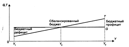 Рис 12. 2 Встроенная стабильность Действенность фискальной политики во многом определяется мультипликационным эффектом Таким образом, фискальная политика в условиях дефицита бюджета способствует его уменьшению или устранению с помощью заимствования и выпуска денег (эмиссии) В условиях бюджетного избытка он устраняется путем погашения государственного долга (что менее эффективно) или изъятия денег из обращения. Фискальная политика может не принести ожидаемых результатов и в случае чрезмерной инфляции, а также эффекта вытеснения инвестиций и чистого экспорта. Поэтому в развитых экономических системах наряду с фискальной политикой государственного регулирования предполагается осуществление жесткой монетарной политики, регулирование цен, занятости, таможенной и валютной политики Таким образом, бюджетно-налоювая (фискальная) политика является частью макроэкономического регулирования в целом.