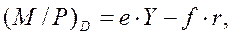(11.6) где e – чувствительность спроса на деньги к изменению объема национального производства (Y). Единица измерения e – руб./руб. Например: e = 0, 8 – это значит, при увеличении Y на 1 млрд руб. спрос на деньги увеличивается на 0, 8 млрд руб. Зависит е от скорости обращения денег. Чем больше скорость обращения денег, тем меньше е. f – чувствительность спроса на деньги к изменению процентной ставки. Единицы измерения f – млрд руб. / процентный пункт. Например: если f = 100 млрд руб., то при повышении r на 1 пункт (например, с 7 % до 8 %) спрос на деньги уменьшается на 100 млрд. руб. Величина f зависит от экономического поведения публики в экономике.