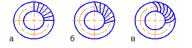 Прямий зуб нарізається в радіальному напрямі вздовж твірної конуса. Прямозубі колеса застосовуються при колових швидкостях до 3 м/с (косозубі – до 15 м/с). У сучасному машинобудуванні (автотракторна промисловість, верстати, авіація, швидкохідні прилади та ін.) переважне застосування мають конічні передачі з коловими зубцями. Вони допускають колову швидкість до 30 м/с, мають підвищену навантажувальну здатність. У таких передачах використовуються колеса з поверхневим хіміко-термічним зміцненням зубців. Головні недоліки конічних передач: 1) конічні передачі складніші від циліндричних у виготовленні та монтажі, оскільки, крім допусків на розміри зубців, необхідно витримувати допуски на кути δ 1 і δ 2, а при монтажі забезпечувати збіг вершин конусів осьовим регулюванням зубчастих коліс; 2) перетин осей валів ускладнює розміщення опор, тому одне з конічних коліс (як правило, шестірня) розміщується консольно, що зумовлює концентрацію навантаження за довжиною зубця і зниження несучої здатності (експериментально встановлено, що допустиме навантаження конічної передачі становить близько 85% еквівалентної циліндричної).