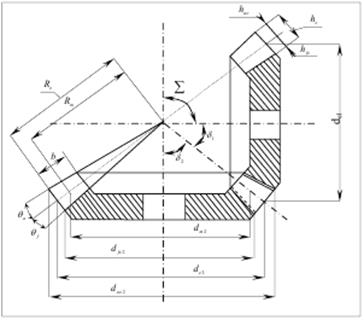 Аналогами початкових і ділильних циліндрів циліндричних передач у конічних передачах є початкові і ділильні конуси з кутами δ 1 і δ 2 (рис. 9.1). При коефіцієнтах зміщення інструмента х1 + х2 = 0 початкові і ділильні конуси збігаються.