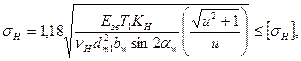 Враховуючи (9.15), умова міцності зуб’їв прямозубої конічної передачі за критерієм контактної напруги набуде такого вигляду: