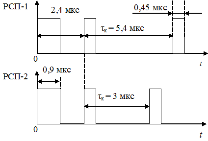 Рисунок 3.3. Структура запросных сигналов в ПРЛ-6М2 первым запускается ПРД-2, который формирует одиночный импульс длительностью 0, 9 мкс – импульс подавления, вторым – передатчик секторного обзора. Задачу формирования запросных сигналов с различными кодовыми интервалами в передатчике ПРЛ-6М2 решает шифратор. Шифратор функционально размещается в ПМ. Принцип работы шифратора ПМ поясняется рисунком 3.4.
