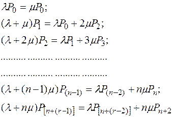 Вероятность, что все каналы обслуживания свободны (все станки и места в накопителе свободны) определяется по формуле