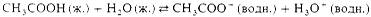 В этом уравнении использована простая (а не двойная) стрелка, чтобы показать, что процесс идет в указанную сторону до полного завершения. Слабый электролит – это вещество, которое диссоциирует на ионы лишь частично. Следовательно, в растворе устанавливается равновесие между недиссоциированными молекулами такого вещества и диссоциированными ионами. Примером слабого электролита является уксусная кислота: