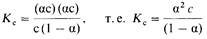 Это соотношение и представляет собой закон разбавления Оствальда. Константа Кс называется константой диссоциации электролита. Чем больше Kc, тем сильнее электролит.