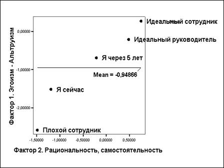 Рисунок 9 – Расположение ролевых позиций в двухфакторном семантическом пространстве (диаграмма рассеяния)