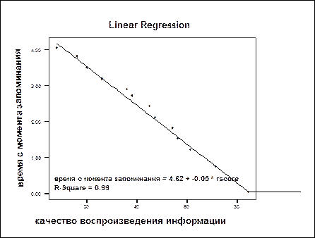 Рисунок 11 – График линейной зависимости между временем с момента запоминания и качеством воспроизведения информации (диаграмма рассеяния) Принадлежность к тому или иному кластеру, группе можно демонстрировать при помощи такого графического метода, как дендрограмма – «дерево» связей между группами (рис. 12).