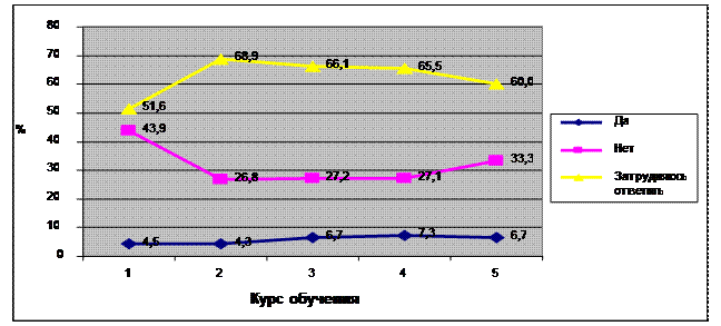 Рисунок 13 – Наличие наркоманов в университете (в зависимости от курса)