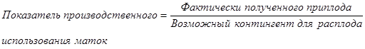 На основе составленного оборота стада, используя дополнительные данные первичного учета, можно исчислить показатели воспроизводства крупного рогатого скота следующим образом: 1) Возможный контингент осеменения представляет собой поголовье коров на начало года, а также телок старше одного года, исключая поголовье коров, подлежащее выбраковке по окончании лактации. 2) Число благополучных расплодов должно быть равно количеству полученного живого приплода. 3) В возможный контингент для расплода включаются коровы и телки старше 2-х лет, имеющиеся на начало года, а также телки до 2-х лет, осемененные на начало года.
