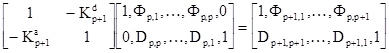 Но, как показано в [5, 7], от матричного уравнения (2.19) можно перейти к матричному уравнению (2.20) лишь в том случае, если коэффициенты фильтров прямого и обратного предсказания p-го порядка связаны с коэффициентами фильтра (p+1)-го порядка следующим образом