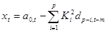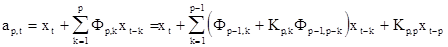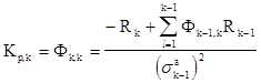 Используя соотношения (2.15), (2.22а), (2.22б) и учитывая (2.24), алгоритм Левинсона-Дарбина, позволяющий вычислять коэффициенты АР по коэффициентам отражения, можно представить в виде