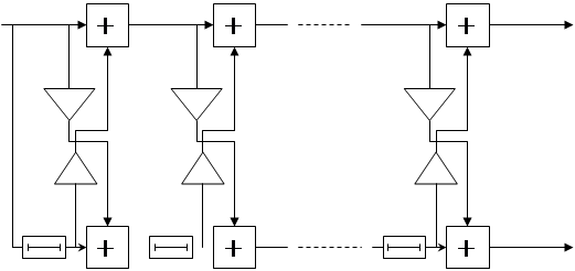 Рисунок 2.- Генератор коррелированного случайногопроцесса на решетчатом фильтре с обратной связью.