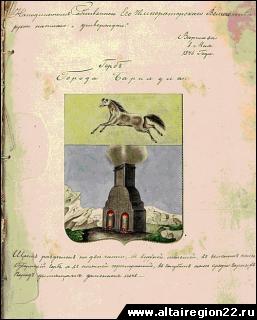 Рисунок герба города Барнаула, утвержденного императором Николаем I 8 мая 1846 г. ЦХАФ АК. Ф. 2. Оп. 1. Д. 8200. Л. 725. После реформ 60–70-х годов ХIХ века феодальные пережитки на Алтае сохранялись в большей степени, чем в центре страны и других районах Сибири. Неприкосновенной осталась принадлежность горного округа царям, и это определило многие особенности развития Алтая в пореформенный период. Горная промышленность, являвшаяся главной отраслью экономики округа, вступила после 1861 года в полосу кризиса. С начала 1870-х годов стала неудержимо нарастать убыточность заводов, и к концу века почти все они были закрыты.