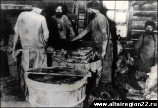Цех обезжиривания овчин на частном овчинно-шубном заводе. 1912 г. ЦХАФ АК. Фотопозитив № 2137. К 1915 году была построена Алтайская железная дорога, соединившая Новониколаевск, Барнаул и Семипалатинск. Совершенствовался и водный транспорт. Алтай в Отечественной войне 1812 г. События Отечественной войны 1812 г. не обошли стороной Колывано-Воскресенский горный округ. На его территории квартировали Сибирский и Иркутский драгунские, Томский, Ширванский мушкетерские и 18-й егерский полки, которые приняли активное участие в Отечественной войне 1812 года. Десять лет на Алтае находился Томский мушкетерский полк.