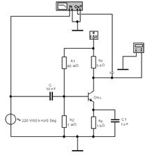 3.1 Зберіть на робочому столі EWB схему у відповідності з рис. 3.1, використовуючи джерело напруги гармонічних сигналів і осцилограф.