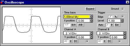 3.2 Виберіть пункт Analysis options… в меню Analysis та переконайтесь, що на вкладці Global знято прапорець RSHUNT. Якщо це не так, зніміть його. 3.3 Отримайте на екрані осцилографа стійке зображення сигналу. Оскільки зв’язок коливального контуру з підсилювальним каскадом занадто великий, форма коливань не гармонічна (рис.3.2).