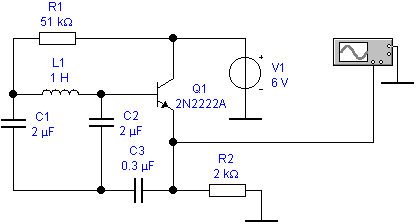 3.1 Зберіть на робочому столі схему автогенератора Колпітца (рис.3.1) та установіть потрібні параметри елементів.