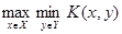 Пусть операция отождествляется с выбором стратегии х, принадлежащей множеству Х и пусть имеется заданный критерий эффективности выполнения операции. Требуется выбрать. такую стратегию, чтобы критерий эффективности имел максимальное значение. Однако в исследуемой модели присутствуют неопределенные факторы, которые преследуют свои цели, влияющие на значение критерия эффективности. В этом случае критерий эффективности будет иметь вид К(Х.У).где Х допустимые стратегии стороны проводящей операцию; У неопределенные факторы. Поскольку У реализует угрозы, то по определению угрозы, отсутвует информация о вероятностной мере.характеризующей множество У. Поэтому полагают, что любое значение неопределенных факторов может действительно реализоваться и при выборе стратегии учитывают и наименее благоприятное значение неопределенных факторов. Стратегия выбирают так.чтобы при наименее благоприятном значении неопределенных факторов значение целевой функции было максимальным. Такой подход приводит к выбору стратегии в соответствии с критерием