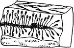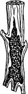 а — рак; б — гнильЧервоточины Гниль древесины образуется под действием дереворазрушающих грибов. В начальной стадии появления гнили древесина имеет ненормальную окраску. С течением времени она превращается в труху. Червоточина — повреждение древесины в виде отверстий, прогрызаемых личинками и жучками. Разметку древесных материалов проводят так, чтобы изделия не имели больших пороков.