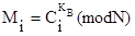 и отправляет криптограмму С1, С2, С3 … Сi, … пользователю В. Пользователь В расшифровует принятую криптограмму С1, С2, С3 … Сi, … используя секретный ключ kB по формуле