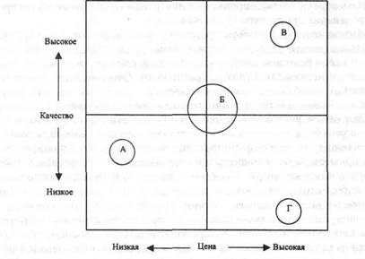 Рис. 1. Карта позиционирования продуктов по параметрам функции " качество-цена"