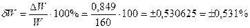 Задание. При измерении расхода калориметрическим расходомером измерение мощности нагревателя производится по показаниям амперметра и вольтметра. Оба эти прибора имеют класс точности Кл=0, 3, работают в нормальных условиях и имеют соответственно шкалы 0-5 А и 0-50 В. Номинальные значения силы тока 4, 0 А и напряжения 40 В. Оценить погрешность, с которой производится измерение мощности. Представить результат измерения мощности нагревателя в соответствии с правилами округления. Решение: погрешность измерения мощности нагревателя Wоценивается как погрешность косвенного измерения по формуле
