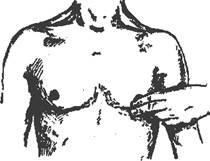 Рис. 1в. Пальпация верхушечного толчка кончиками пальцев