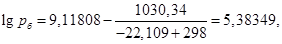 рб = 241 800 н/м2 = 0, 2418 МПа; для n -пентана А = 8, 99851, В = 1075, 82, С = —39, 791,