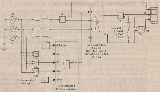 Рис. 3. 1.Модель трехфазного мостового тиристорного преобразователя