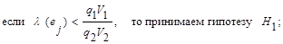 или, используя новые обозначения, V1 = C11 – C12, V2 = C22 – C21, запишем новое определение для порога принятия решения: