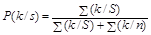 Как видно на рис.15, для использования пяти оценочных категорий необходимо разместить на оси сенсорных событий s четыре значения s0: s0(1), s0(2), s0(3), и s0(4), которые разбивают всю ось s на пять частей, соответствующих числу категорий оценки. Введем некоторые новые величины, необходимые для дальнейшего рассмотрения метода: P(k/s) – вероятность того, что сенсорный эффект, вызванный стимулом, отнесен к k -той оценочной категории; P(k/n) – вероятность того, что сенсорный эффект, вызванный шумом (пустой пробой), отнесен к k -той оценочной категории. Эти величины рассчитываются следующим образом: