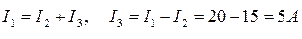 1. Разбиваем схему на элементарные контуры: a-b-c-f-a и f-c-d-e-f. Будем считать, что по первому из контуров течет контурный ток II, по второму – контурный ток III (направление обоих токов против часовой стрелки). 2. Для каждого контура составим уравнение по второму закону Кирхгофа: EI=IIR11 – IIIR12, EII=IIIR22 – IIR21, где EI, EII – контурные ЭДС, равные R11, R22 – собственные сопротивления контуров: R12=R21 – общее сопротивление смежных контуров, R12 = R21 = R02+R2=0, 4+0, 3=0, 7 Ом. 3. 0, 6=1, 5II – 0, 7III 1, 2=1, 5III – 0, 7II Из первого равенства Подставляя во второе: находим III=1, 26 А и 4. Находим токи ветвей через контурные токи: I1= II=0, 99 A, I2=III - II=1, 26 – 0, 99=0, 27 A, I3=III=1, 26 A. Ответ: I1=0, 99 A, I2=0, 27 A, I3=1, 26 A.