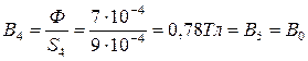 Пример 3. Магнитопровод собран из 5 частей электротехнической стали Э42. Длины участков: l1=l3=80 мм; l2=100 мм; l4=40 мм; l5=55 мм; S1=10 см2; S2=8 см2; S3=4 см2; S4= S5=9 см2. Определить ток I в катушке, имеющей w=1000 витков, чтобы поток Ф=7·10-4 Вб.