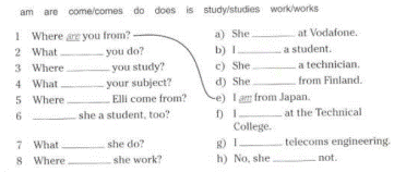 - В пропуски вставьте правильную форму глагола и соедините вопросы с ответами (предложения писать полностью).
