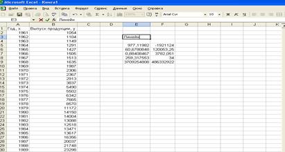 Рис. 3.1 Результат вычисления функции ЛИНЕЙН