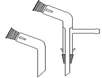 Алонжі (рис. 11) - скляні зігнуті трубки, що використо-вуються при перегонці для з’єд-нання холодильника з приймачем та при інших роботах. Такі з’єднання можуть бути зроблені за допомогою пробок або шліфів.