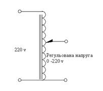 Рис. 17. Лабораторний автотрансформатор (ЛАТр) а - зовнішній вигляд, б – електрична схема Електричні плити – бувають круглі та прямокутні, з відкритою або закритою спіраллю. Ступінь нагріву електроплити можна встановити перемикачем потужності або регулюючи автотрансформатором напругу, що подається на плиту. Колбонагрівачі застосовуються для нагрівання кругло донного скляного посуду. Вони вищі за звичайні електроплити і мають конусоподібне заглиблення у середині. Регулювання нагріву здійснюється перемикачем потужності або зміною напруги на автотрансформаторі. Трубчасті печі використовуються для обігріву реакційних трубок. Вони складаються з керамічної труби (діаметром 15-80 мм), на яку намотана спіраль розжарювання і яка розміщується у середині більшої за розміром керамічної труби. Застосовуються також трубчасті печі, що складаються з двох половин. Ступінь нагріву регулюється зміною напруги на автотрансформаторі або електронним регулятором. При роботі з електричними приладами необхідно дотримуватися таких правил. 1. Не обливати прилади розчинами солей, кислот тощо. 2. Ставити електронагрівальні прилади на теплоізоляційний шар (азбест, шамот тощо). 3. Слідкувати за чистотою приладів; перед включенням печі впевнитися чи немає усередині них сторонніх предметів. 4. Включати печі можна тільки тоді, коли напругу автотрансформатора виведено в нульове положення.