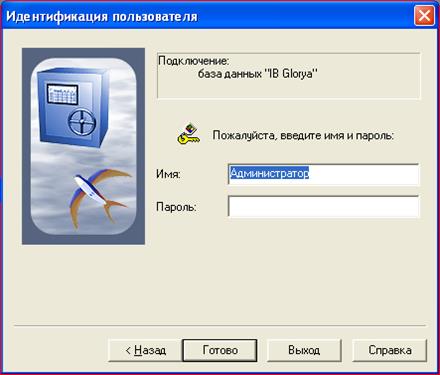 Вслед за этим окном на экране появится диалог идентификации пользователя, с помощью которого вводится имя пользователя и его пароль, что обеспечивает определение прав (рамок доступа) которыми пользователь обладает (Рисунок 4).