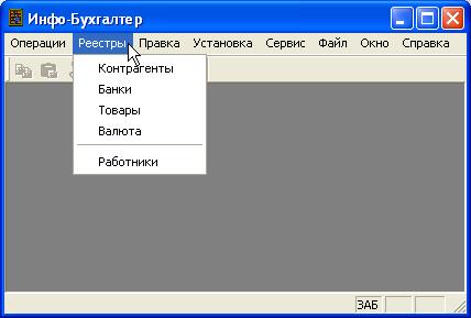 Пункт главного меню «Реестры» Это пункт меню обеспечивает быстрый доступ ко всем реестрам программы (Рисунок 8). . Рисунок 8. Пункт главного меню «Реестры»