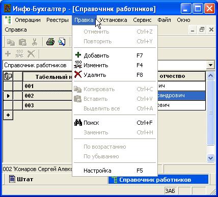 Этот пункт необходим для работы с буфером обмена, корректировки сведений и данных, отмены и повтора действий пользователя, поиска и замены информации а также ее сортировки (Рисунок 9).